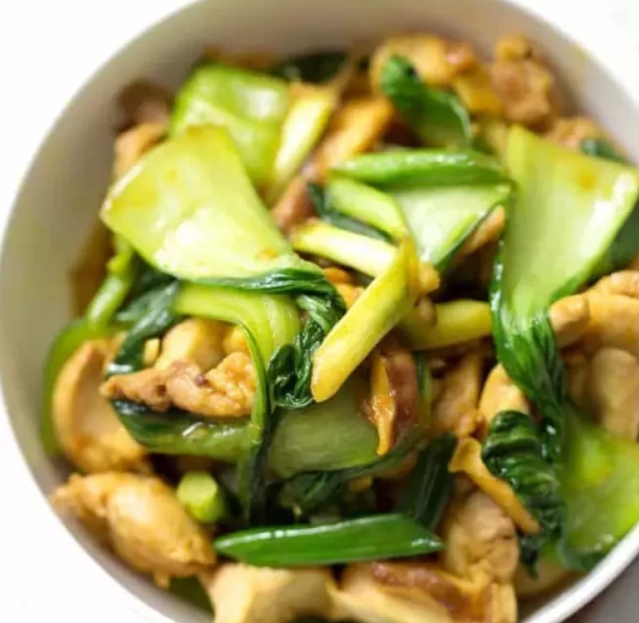 Minced Pork, Mushroom Wrapped, Bok Choy, And Carrot.